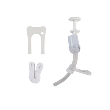 A flexible tube extension helps keep connections away from the neck, chin, and stoma.