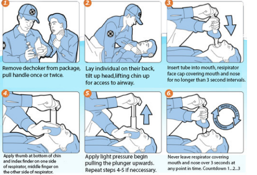 The illustration below shows step-by-step manufacturer instructions for using the Dechoker device.