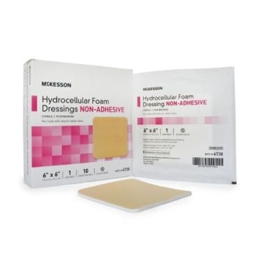 Non-Adhesive Foam Dressings by McKesson are high-quality Hydrocellular Foam Dressings used as a primary or secondary dressing for wounds with moderate to heavy exudate. Their highly absorbent central hydrocellular foam layer effectively absorbs wound drainage, while the special formulation helps maintain a moist healing environment at the wound surface.