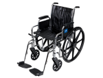 The Excel Wheelchair is a carbon steel frame wheelchair that is built for strength and durability. The frame is chrome plated and rust- and chip-resistant. The frame is so durable, that the manufacturer provides a lifetime warranty on the frame and welding. Equipped with a dual-axle with adjustable Hemi-height, this wheelchair can support up to 300 pounds. The vinyl upholstery is easy to clean and maintain. Wheelchair models with 16-inch seat width come with navy upholstery, while modes with 18 and 20-inch width seats come with black vinyl upholstery, except for MDS806300RBY which has ruby upholstery.