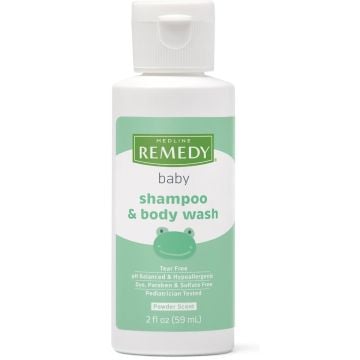 Medline Remedy Baby Shampoo and Body Wash is a mild head-to-toe cleanser specially formulated for sensitive pediatric skin.