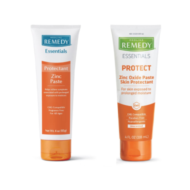 The Medline Remedy Essentials Zinc Paste creates a barrier that seals out moisture and protects the skin. It uses 75% petrolatum and 20% zinc oxide as a long-lasting layer of protection from urine, feces, or moisture exposure. The barrier seals out moisture where exposure is frequent, such as in diapers and adult briefs. The formula is fragrance-free and CHG compatible, making this cream ideal for different skin sensitivities and age ranges.