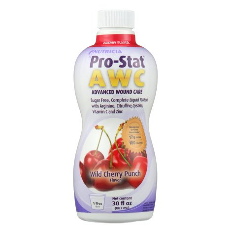 Pro-Stat Sugar Free AWC Advanced Wound Care is a sugar-free, ready-to-drink medical food health supplement. Pro-Stat AWC provides 17 g of enzyme-hydrolyzed complete protein and 100 calories per 1 fl oz. Arginine, citrulline, cystine, vitamin C, and zinc have been added to fortify Pro-Stat Sugar Free AWC. The drinks are rich in amino acids that are critical for replenishing depleted protein and accelerating tissue healing in patients with pressure ulcers. Pro-Stat AWC has no fat or cholesterol. Low in sodium, phosphorus, and potassium, Pro-Stat AWC can be used for pre-surgery to protect lean body mass and provide strength and energy. For post-surgery, ProStat AWC supports advanced wound healing, recovery, energy, and metabolism. Pro-Stat Advanced Wound Care can be taken straight or mixed with liquids or soft foods. Pro-Stat Sugar Free AWC Advanced Wound Care is certified kosher.