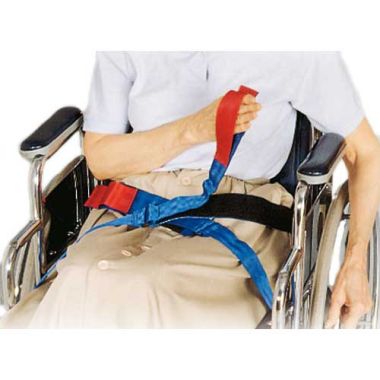 Skil-Care Resident-Release Slider Belts are non-restrictive wheelchair safety belts for mobility patients. The wheelchair belt helps patients stay in the chair by keeping them from sliding out. This wheelchair restraint positions the patient's hips to prevent pelvic thrust. It easily attaches to the chair and is available in two separate closure options: Velcro or Velcro with Red Loop. The Red Loop version offers an easy grab function for patients who have a loss of dexterity. This safety belt is 2 inches wide and is adjustable in length from 35 to 42 inches. The Resident-Release Slider Belt may be cleaned with a spray-type cleaner and a damp cloth or sponge.