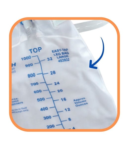 The Easy Tap flip valve is designed for easy, one-handed emptying of the bag without needing additional accessories or tools. This flip valve is positioned at the bottom of the leg bag, allowing the user to regulate urine flow as it empties.